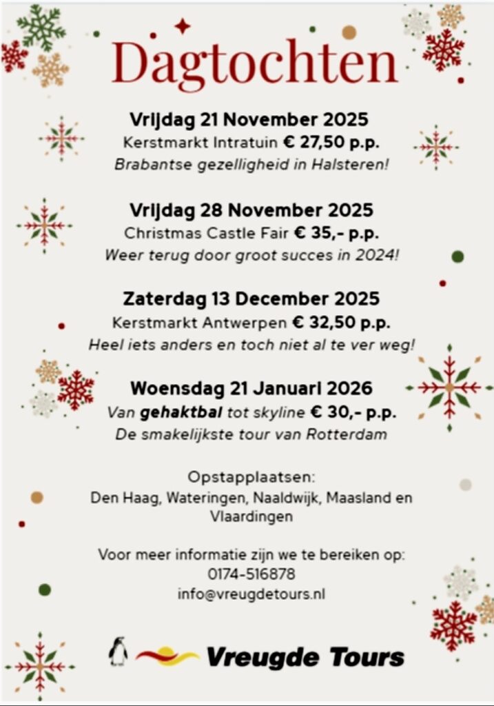 Samen met Vreugde Tours organiseren we vier leuke kerstdagtochten!